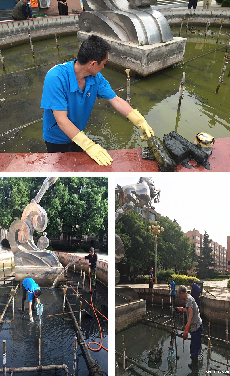 为提升公司办公、生活环境,提高小区管理中心服务质量,2017年5月24日,小区管理中心工作人员对公司喷泉池进行了彻底的清洗、维修。