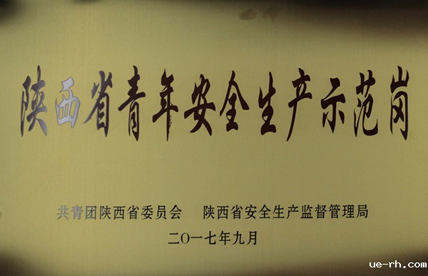 公司荣获 “陕西省青年安全生产示范岗”荣誉称号