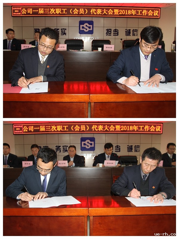 工作会上,通报了2017年度各单位、部门考核结果;表彰了2017年度公司的先进集体和先进个人;与各单位、部门、党支部签订了经营目标责任书、安全生产综治维稳工作目标责任书和党风廉政建设目标责任书。