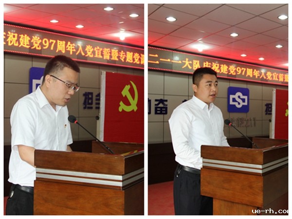 为庆祝中国共产党建党97周年华诞,6月29日,公司党委在四楼会议室召开“二一一大队有限公司庆祝建党97周年暨入党宣誓、专题党课大会”,以新党员宣誓、老党员重温入党誓词、入党积极分子接受洗礼教育和专题党课的形式庆祝党的生日,深入推进党的十九大精神、梁家河精神的学习宣贯。机关及各经营实体单位的党员、入党积极分子近60余人参加了大会。会议由公司纪委书记、工会主席张宏伟主持。