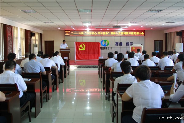 二一一大队有限公司召开庆祝建党98周年重温入党誓词暨专题党课大会