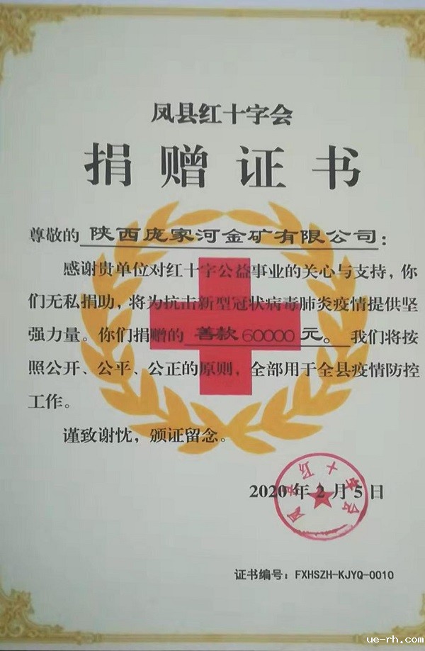 ——陕西庞家河金矿有限公司捐款6万元助力防控疫情