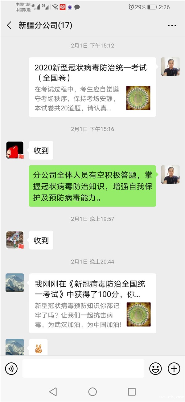 一是积极组织学习“大队加强疫情防控做好复工复产工作专题工作会”精神:以学习强国、微信、视频电话、线上病毒防治考试等形式,加强疫情防控宣传,使分公司形成不信谣、不传谣、科学防控的氛围,确保了分公司零感染,逐步恢复生产。