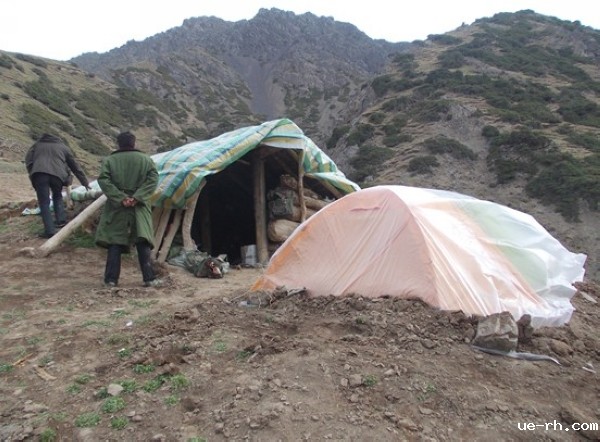 在大山深处的驻地里,组员们只能住在狭小透风的小帐篷和牧民的地窝子里。整个项目组团队意识强烈,同事情谊浓厚,年轻人主动谦让老师傅住在地窝子里能勉强隔潮的木棍床上,虽然木床不平整,睡上去十分硌腰,但对于野外的潮气带来的各种麻烦,硌腰也是要克服的。每天山里的风特别强烈,狂风呼啸都会扬起大片的沙尘,大风过后,帐篷里、地窝子里的床铺上都是一层厚厚的尘土,有时,大家吃的囊饼子上都带着不少的灰尘;大风的疯狂也侵袭着小帐篷,小帐篷脆弱的骨架根本抵挡不住狂风的暴力,小帐篷时常被狂风平平的压倒在地上,人只能在帐篷里撑着支架,以防被风吹断。组员们的信念坚定,不管狂风再大、沙尘再厚、困难再多,他们都能克服,他们坚信二一一地质人写满顽强意志的“战旗”不会被狂风吹到。