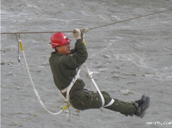 木札特铜矿在吉尔姆金矿的对面,但中间有一条宽约50多米的木札特河,河水很急,过河的路被洪水冲毁,车辆无法通行,我们找到了踏勘时发现的“索道缆车”,只能渡“天险”。李满明利用保险带,从钢丝绳上攀过去,将小车拉过来,以便让别的同志通过;虽然很惊险,但也很刺激,可以说是“苦并快乐着”。