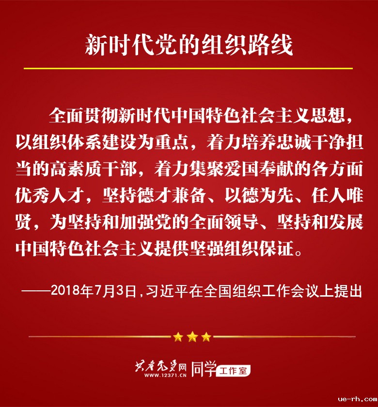 2020年6月29日,中共中央政治局就“深入学习领会和贯彻落实新时代党的组织路线”举行第二十一次集体学习。习近平在主持学习时强调,组织建设是党的建设的重要基础。党的组织路线是为党的政治路线服务的。我们党要长期执政、永葆活力,团结带领全国各族人民沿着中国特色社会主义道路实现中华民族伟大复兴,最重要的是把党建设得更加坚强有力。新时代党的组织路线为加强党的组织建设提供了科学遵循,为增强党的创造力、凝聚力、战斗力提供了重要保证。我们要毫不动摇坚持和完善党的领导、继续推进党的建设新的伟大工程,贯彻落实好新时代党的组织路线,不断把党建设得更加坚强有力。 [详细]