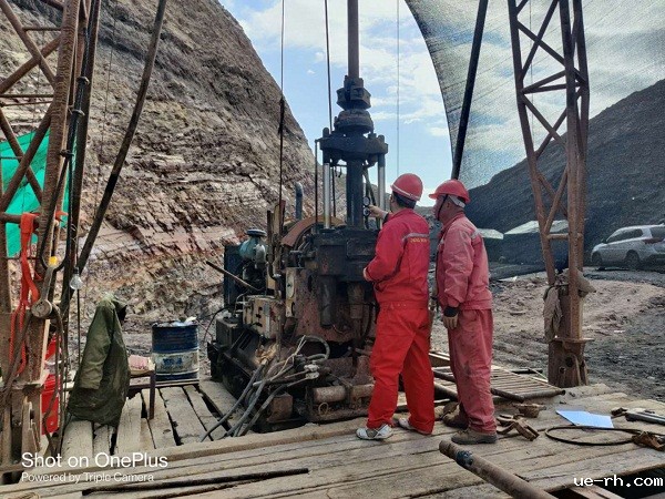 下午5点,接到钻机负责人通知,开钻前一切准备工作已就绪,项目经理带着地质技术员到现场进行了开钻前钻孔孔位定测及开孔角度测量,符合要求后双方签订了开孔通知书。在进行了简单的开钻仪式后,该项目的最后一个钻孔ZK303顺利开钻。
