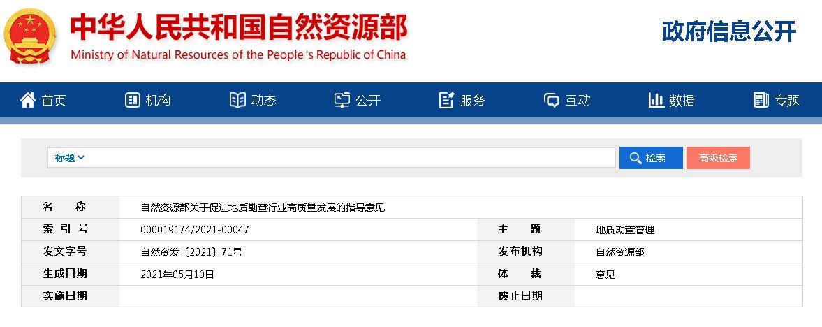 自然资源部关于促进地质勘查行业高质量发展的指导意见