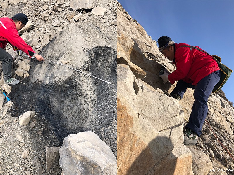 而岁末的新疆异常寒冷,堪称“北国风光,千里冰封,万里雪飘”。平时需要一个半小时的山路,由于路面积雪、结冰,往往需要三个小时以上,项目成员走到目的地早已“热气腾腾”,顶着将近零下二十度的严寒,进行地质编录。虽然双手戴着手套,但一会儿就会被冻僵。经过多个小时的认真编录,项目成员的耳朵、鼻子、手脚早已冻的没有了知觉。项目驻地虽然暖和一点,但艰苦的住宿条件也难以完全抵挡蚀骨的寒风。