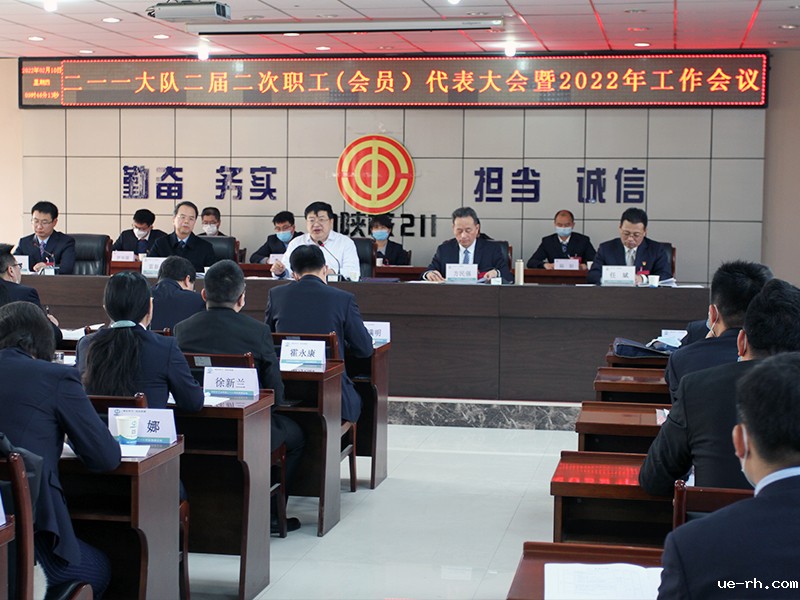 2022年2月10日,二一一大队二届二次职工(会员)代表大会暨2022年工作会议在办公楼四楼大会议室圆满召开。集团公司党委书记、董事长杨百锁受邀出席,到会指导。来自公司机关、各基层单位的正式职工代表、列席代表以及外部董事等共计40余人参加了大会。
