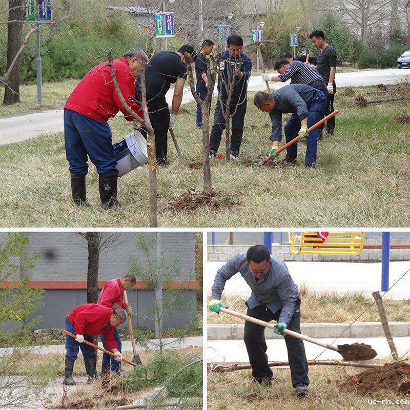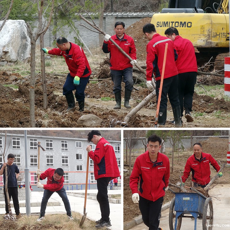 在金矿统一安排部署下,常务副总经理张海宏带领30多名干部职工在矿区主干道、宿舍楼前后、文化广场及选厂区域道路两旁种下樱花、海棠、白皮松等树苗。只见大家干劲十足、热火朝天地投入到劳动中,有的用石灰布坑点、有的挖坑、有的埋土、浇水,还有熟知栽种知识的职工现场教大家如何给树木修枝、施肥等。大家你追我赶,比干劲、比进度,各个环节衔接有序,样样做得认真到位,个个忙得满头大汗,到处都是忙碌的身影和劳动的欢声笑语。经过一天辛勤的劳动,大家在矿区共种植树160多株树苗。