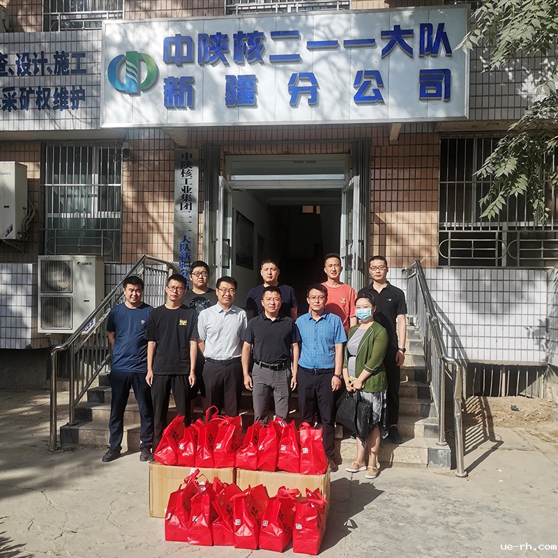 7月12-13日,集团公司党委委员、副总经理赵铜飞一行到二一一大队新疆分公司调研指导工作,并为野外一线职工送去了“清凉大礼包”。集团公司人力资源部部长郭飞、二一一大队总工程师、副总经理、工会主席刘旭陪同。