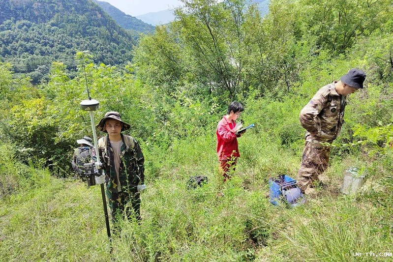 因重磁剖面重力测量点对高程精度要求比较高,所以现阶段有约1100个重力测量点急需用GPS-RTK进行精确测量,时间紧,任务重。秦岭地区植被极其茂密,时值8月正是蛇出没的时节,工作难度特别大,而目前院里专业测绘技术人员只有2人。为了集中力量解决问题,啃下“硬骨头”,院党支部充分发挥战斗堡垒作用,分析研判后整合资源,从各项目部抽调地质、物探等非测绘专业人员组成5个测量突击党小组,对综合物探普查项目测量工作攻坚克难大干20天。经过几天的认真培训和实际操作,大家基本上掌握了测绘仪器的使用和测量方法,大大提高了现阶段的工作效率。