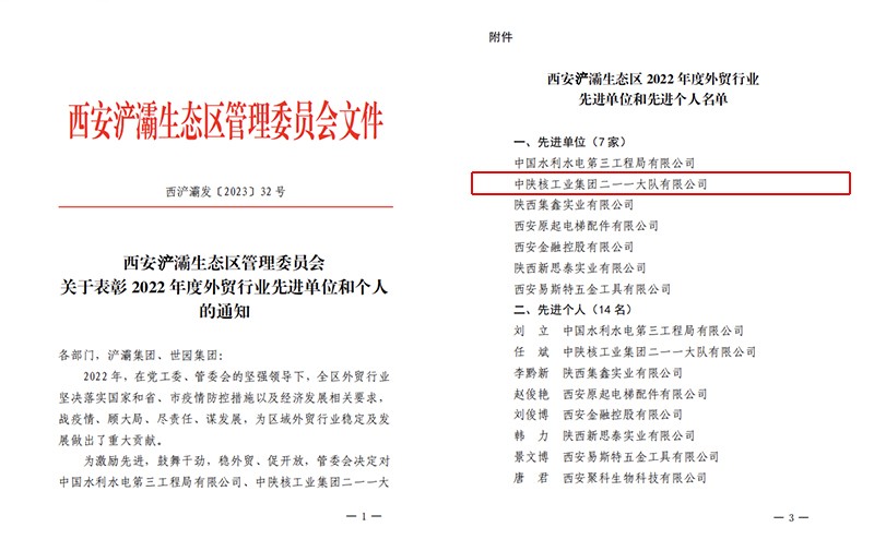 近日,必威唯一官方网站荣获西安市浐灞生态区“2022年度外贸行业先进单位”称号,公司党委副书记、总经理任斌荣获“先进个人”称号。