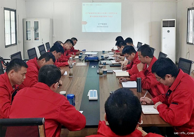 6月20日,矿产勘查院党支部在凤县马蹄沟项目部二楼会议室召开第二次党员大会。公司党委委员、副总经理、总工程师刘旭出席会议并讲主题教育专题党课,支部全体党员、发展对象、入党积极分子参加了会议。