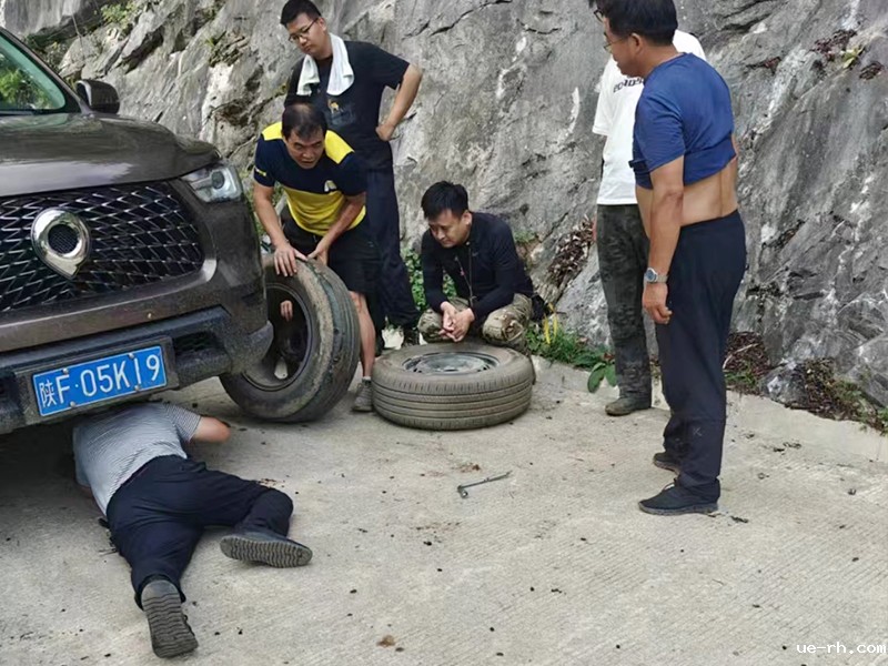 正当大家继续前行时,又一位老乡的车轮胎损坏,车辆无法继续行驶。面对这突如其来的事故,他们再次伸出援手,有的支起千斤顶,有的帮忙拧螺丝,有的卸备胎,在大家的齐心协力下迅速为老乡更换了轮胎。老乡一边感谢一边为他们竖起了大拇指。